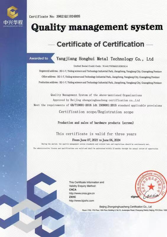 廣東宏惠金屬公司是家20多年一直專注鉆尾螺絲開發(fā)與生產(chǎn)的企業(yè),是國內(nèi)較早做鉆尾的廠家之一,同時也是國內(nèi)專業(yè)開發(fā)生產(chǎn)鉆尾螺絲的企業(yè)之一。 我司地址為于廣東省陽江市江銀嶺科技園距沈海高速白沙出口不到2公里,距陽江高鐵站也只有十余公里交通便利。 公司占地120畝,擁有超500臺套專業(yè)設計 生產(chǎn) 檢測設備。一個超200人的專業(yè)團隊,能夠嚴格按照ISO9001質(zhì)量體系要求生產(chǎn)符合GB DIN AS3566 ANSI JIS BS等標準的產(chǎn)品,生產(chǎn)銷售各種高品質(zhì)緊固件系列產(chǎn)品,為中高端客戶提供優(yōu)質(zhì)服務。也可按照客戶要求設計生產(chǎn)各種鉆尾,年產(chǎn)高品質(zhì)碳鋼 不銹鋼鉆尾螺絲2萬余噸.在各大客戶的鼎力支持下產(chǎn)品暢銷全國,并遠銷亞 非 拉 歐等地,在這20多年發(fā)展的道路上我司堅持“以質(zhì)量求生存,以信譽求發(fā)展”的精神理念不斷完善公司體系。